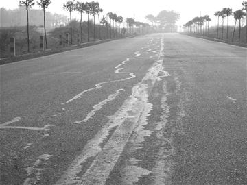黃陂區(qū)劉(佐輔)大(咀)公路原為四級(jí)公路,全長(zhǎng)18公里。2005年12月,該路動(dòng)工改建為二級(jí)公路,整個(gè)工程投資3240.7萬(wàn)元。2006年12月,劉大公路建成通車(chē)。然而,該路建成不到一年,路面就出現(xiàn)縱橫交錯(cuò)的裂縫,每隔一段就出現(xiàn)一個(gè)大補(bǔ)丁,部分地段還出現(xiàn)了地基沉降,導(dǎo)致路面下雨天積水。2007年11月,該路開(kāi)始進(jìn)行修補(bǔ),主要方式是對(duì)部分路段挖開(kāi)重新施工,在一些裂縫處灌瀝青。