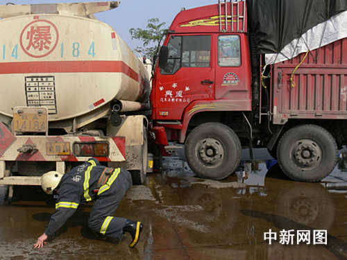 廣西南寧油罐槽車被撞泄漏一噸柴油(圖)