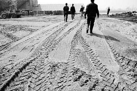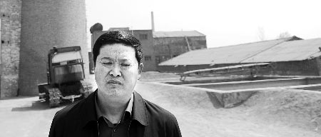 昨日上午10時(shí)許,省環(huán)保局監(jiān)察總隊(duì)負(fù)責(zé)人孫自臣帶領(lǐng)執(zhí)法隊(duì)員來到一片煙囪林立的磚窯場(chǎng),穿過一條煙塵滾滾的土路后,執(zhí)法隊(duì)員看到在一堆高10多米的礬土礦石后面就是被舉報(bào)的土煉制廠。