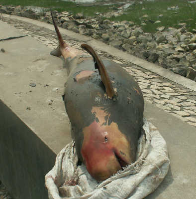 昨天,本市(上海)崇明島發(fā)現(xiàn)一只1.82米長,擱淺死亡的罕見巨型江豚,一些當(dāng)?shù)貪O民撿獲后,原打算運回家中作為美食,被邊防民警及時發(fā)現(xiàn)并制止。