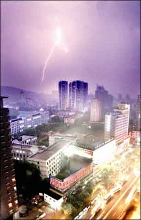 前日晚上11時以后,江城突然狂風(fēng)大作。昨日零時開始,伴隨著閃電和轟隆隆的雷聲,漢口和武昌最先開始下起暴雨。截至昨日中午,不同程度的暴雨還在持續(xù)。