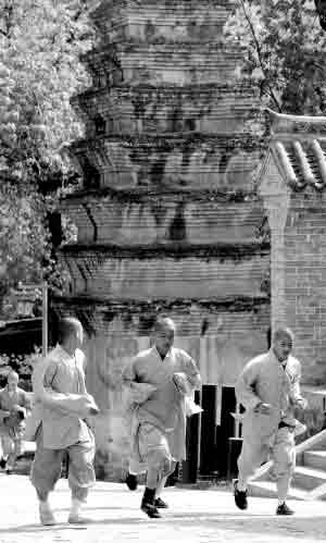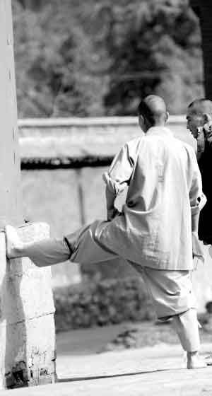 早來的游人們先是驚奇地看著這些穿著長袍短褂的孩子,接著便爭先恐后與他們合影,幾個害羞的小沙彌紛紛躲在了大哥哥身后。他們這是出來配合一個機構(gòu)拍攝專題片的,隨著少林寺名聲的與日俱增,少林寺的武僧又有了新的江湖。