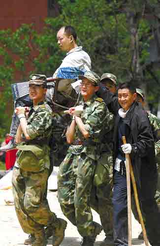 現(xiàn)場(chǎng)到處都是尸體,但身邊不斷奔走著抬著救出的生還者。那一刻,記者在悲痛的情緒中,心底涌動(dòng)的還有對(duì)生命重生的欣喜。(趙世龍 闕道華 宋金峪 陳文筆 陳秋明 趙世龍/圖)