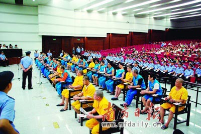 昨日,參與開庭審理這起黑社會性質(zhì)組織犯罪案件的旁聽人員有被告人員家屬等社會各界人士共500人左右,其中包括禪城區(qū)人大代表和政協(xié)委員40多人。除此之外,還有參與押送、維持法庭審理秩序的法警和公安民警多達200人左右,以及36名被告人的辯護律師22人、禪城區(qū)檢察院公訴人員5名。該案開庭審理規(guī)模之大,備受社會各界高度關(guān)注,是禪城區(qū)法院成立以來所罕見的。