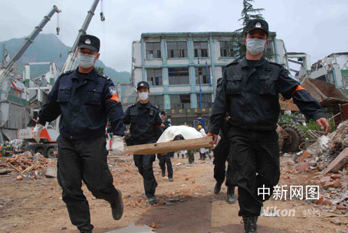 5月15日是災后第3天,“時間就是生命”,廣東支援災區(qū)的公安特警和公安邊防、消防武警官兵頑強拼搏,日夜奮戰(zhàn),以高昂的斗志爭分奪秒開展救援工作。