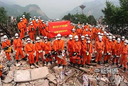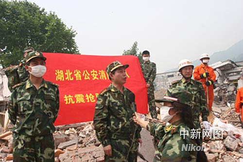 湖北省消防總隊救援隊目前共分為三批,第一批救援隊由曾慶亮副總隊長帶隊,官兵300人,攜帶車輛30臺,各類裝備器材8867件(套),包括生命探測儀、手動(電動)破拆器材組、多功能救援擔(dān)(支)架、撐項器、大型升降照明裝置等。隊伍于13日凌晨6時出發(fā),于14日晚乘車到達(dá)四川省廣元市。目前,救援隊根據(jù)前線指揮部的統(tǒng)一部署,正對受災(zāi)嚴(yán)重的廣元市青川縣關(guān)莊鎮(zhèn)實施緊急救援,由于通訊中斷,目前還無法與救援人員取得聯(lián)系。