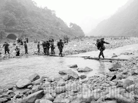 “我們?cè)谶@里等候團(tuán)長(zhǎng)和戰(zhàn)友們回來(lái),他率領(lǐng)部隊(duì)正引領(lǐng)數(shù)百災(zāi)民從高山密林中向漢旺轉(zhuǎn)移。”前日19時(shí),有著“烏蒙鐵軍”之稱的解放軍某部團(tuán)政委曾祥明站在亂石嶙峋的綿陽(yáng)河上游河谷中,十分焦急地告訴記者,他們已與團(tuán)長(zhǎng)周宏許所率領(lǐng)的數(shù)百官兵失去聯(lián)系10多個(gè)小時(shí)了。