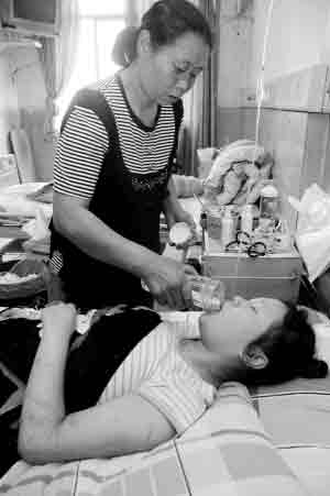 昨日,(重慶)市急救中心,母親給甘瞿霞喂水 記者 鄒飛 攝