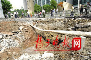 現(xiàn)場有市民稱,當(dāng)時塌陷有“22米多深”。而記者看到,塌方區(qū)域近30平方米,下陷處深的有3米多,淺的1米多,一臺挖掘機正將坍塌的浮土挖走清除。在塌陷處,一個1米見方的窟窿里,有大量的清水滲出,形成一方小塘。正在搶修的市政工作人員說,塌方的馬路下面埋著一根直徑1.2米的主供水管,另有一根污水管,還有一根10千伏的電纜,“幸虧這些市政設(shè)施沒受損,不然后果相當(dāng)嚴(yán)重!”目擊者介紹,當(dāng)時路上車輛較少,肇事大貨車載重有26噸,經(jīng)過此地時,突然后輪陷了進去,結(jié)果越陷越深,緊接著這里就塌方了。施工人員稱,“二次塌方”可能不大。 范曉林 梅建明