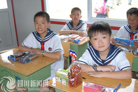 5月31日下午,中國人民解放軍海軍政治部援建的天河海軍小學(xué)正式掛牌成立,這也是綿竹市第一所受災(zāi)后新建成的小學(xué)校。明天,天河海軍小學(xué)的孩子們可以在新建立的校園內(nèi)過六一兒童節(jié),這批孩子也是綿竹受災(zāi)后首批返回校園的孩子。
