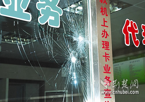 從現(xiàn)場情況看,有六塊防彈玻璃受損,大廳空調(diào)、查詢機(jī)、密碼器、叫號機(jī)、兩臺電腦以及大堂經(jīng)理辦公桌,全部被歹徒破壞,初步估算直接損失30余萬元。