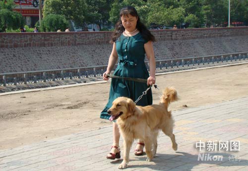 據(jù)了解,“福娃”今年一歲半了,它是一只“黃金獵犬”,是個(gè)“boy”,身高60厘米,體重58公斤。現(xiàn)在,經(jīng)過兩個(gè)多月的“隨從訓(xùn)練”,它已經(jīng)掌握了十幾個(gè)英文單詞,像“good”,“no”,“go”,“stop”,“l(fā)eft”,“right”,“wait”,“sleep”等。不過,畢竟“福娃”從小生活在鄭州,有些河南話還是聽得懂哩,關(guān)大姐也是經(jīng)常中英文夾雜著教它。 “福娃”每天的訓(xùn)練很辛苦,當(dāng)看到它疲憊的神情,關(guān)大姐也會(huì)很心疼,會(huì)安慰它。當(dāng)它表現(xiàn)好的時(shí)候,也會(huì)給予表揚(yáng)和鼓勵(lì)它。