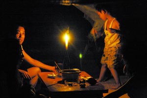 入夜,電路無法覆蓋的山上臨時安置點(diǎn),居民只得秉燭談心。