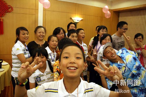 中新網(wǎng)6月16日電 (付美斌 關(guān)向東 陳少婷)6月15日晚上,是89名參加“愛心呵護(hù)、陽光行動(dòng)”活動(dòng)的四川災(zāi)區(qū)孩子們,在海南渡過的最后一個(gè)夜晚,孩子們?cè)谝酪啦簧嶂懈鎰e一直陪伴他們的心理輔導(dǎo)老師、導(dǎo)游阿姨,以及向外界傳播他們一言一笑的記者叔叔阿姨們。懂事的孩子們用不同方式表達(dá)他們對(duì)海南的感謝和眷念,有的用紅色蠟燭油在白紙上涂心字寫相思,有的忙著讓海南叔叔阿姨們簽名留電話,有的拉著愛心叔叔阿姨讓記者拍離別合影照片,更多的是抱著愛心叔叔阿姨們哭成“淚人”。