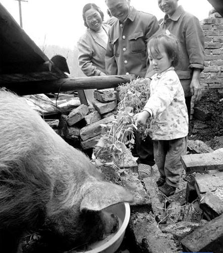 十多個(gè)戰(zhàn)士戴上口罩,搬豬圈廢墟上的磚塊、木板。當(dāng)戰(zhàn)士把底層的一塊木板掀開的時(shí)候,男主人喊起來:“我的豬還活著!”原來,豬圈有兩層,上面是木板閣樓,堆放著許多木板和木炭。豬圈垮塌,木板閣樓和地面之間留下半米高的夾縫,這頭豬一直就在夾縫下趴著。黃杰注意到,豬圈垮了后,閣樓上堆放的木炭撒了一地,可能這頭豬吃了一個(gè)多月的木炭活了下來。至于豬喝什么,有人猜測(cè)是雨水。 (成都商報(bào))