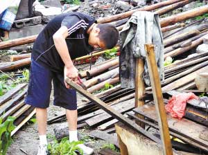 什邡市湔氐鎮(zhèn)的氣溫有點高,徐星手里有根鋼筋,任務(wù)是撬下屋頂仍完好的椽子。他已記不清何家是第幾站,說自己只是在做力所能及的事情。