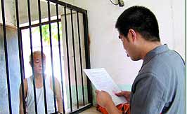 昨日下午2時(shí)30分,省高院刑二庭兩位審判人員乘車(chē)前往關(guān)押陳雙全的曲江監(jiān)獄。半小時(shí)后,審判人員在監(jiān)獄見(jiàn)到了陳雙全,當(dāng)時(shí)陳雙全上身穿了一件白色背心。