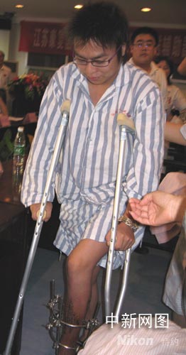 今日,江蘇省衛(wèi)生廳、殘聯(lián)系統(tǒng)為他們免費贈送了拐杖、輪椅等輔助器具,便于日后下地行走。截至六月二十六日,全省為收治的地震傷員安裝假肢五例,適配矯形器二十六具,配送輪椅一百六十三輛,贈送拐杖及其他輔助器具四百三十件,全省康復(fù)經(jīng)費實物投入已達一百〇三點八五萬元。