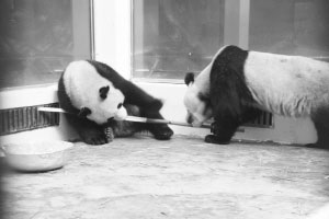 前晚,“希望”和“偉偉”住進(jìn)武漢動(dòng)物園熊貓館后,先花10余分鐘把臥室嗅了個(gè)遍,熟悉環(huán)境后,抱著飼養(yǎng)員送進(jìn)的竹子吃起來(lái)。臨睡前,飼養(yǎng)員給它們送進(jìn)一盆水,喝光后,兩個(gè)小家伙對(duì)鋁合金水盆產(chǎn)生了濃厚興趣,把它當(dāng)玩具拖過(guò)來(lái),拉過(guò)去,搶到手后就用嘴咬,將嶄新的水盆咬得像篩子。