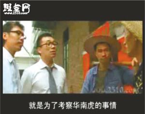 事隔4個(gè)多月后,近日“周老虎”還原真相成了紙老虎。隨后記者在斑點(diǎn)網(wǎng)等視頻網(wǎng)站上看到,從6月30日開(kāi)始,全長(zhǎng)27分47秒的視頻小電影《拍虎》也被傳到網(wǎng)上,片中周正龍被稱(chēng)為“周震聾”,因?yàn)榱謽I(yè)局張局長(zhǎng)承諾“如果當(dāng)?shù)卮迕裨谖覀兛疾礻?duì)進(jìn)山之前能發(fā)現(xiàn)華南虎,我們會(huì)給一箱錢(qián)作為獎(jiǎng)勵(lì)”,于是“周震聾”十分興奮,上山尋虎十幾天,最后與人密謀通過(guò)年畫(huà)拍出華南虎照片。全片最后表現(xiàn)“周震聾”在事情敗露后,從山崖摔下導(dǎo)致失憶,人也變得瘋瘋癲癲,成天抱著個(gè)假老虎模型唉聲嘆氣。