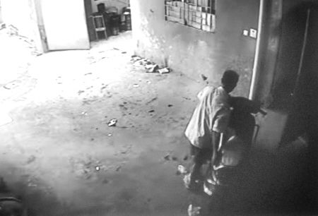 “這個人很了解這里的情況,”鄭先生說,他知道鐵門自動關(guān)閉的響聲會驚動樓上的人,所以用鐵門下面的磚頭頂住鐵門。