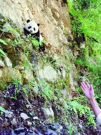 路過的人都停下來了,熊貓的周圍,人越聚越多。熊貓所處的位置是路邊的崖壁,路的另一側(cè)有條河。馬先生說,在他們之前就守在那里的幾人好像是西安市供電局的幾名職工,他們分析熊貓可能是下山來喝水的,要回去時(shí)和家人走散了。他們本打算將這只熊貓想辦法送到坡度較為平緩的地方,讓它自己回去?捎^察后發(fā)現(xiàn),小家伙所處的位置往上沒有適合它前行的路,那么小家伙是不是摔下來的呢?他們決定原地守護(hù),及時(shí)通知?jiǎng)颖H藛T,在確定這小家伙沒有受傷后,再送它回家比較穩(wěn)妥。