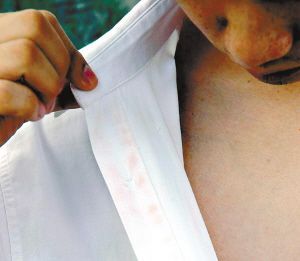 小黃驚訝地發(fā)現(xiàn),自己貼身穿了一段時間的衣服上面,東一塊西一塊全部是紅色的印跡。由于當(dāng)時小黃穿的是一件白襯衫,紅色的印跡顯得格外清晰。