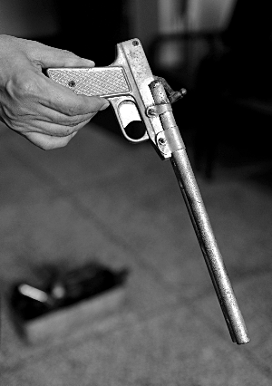 他介紹,平時(shí)公安收繳的槍械都保存在一個(gè)封閉的庫房?jī)?nèi)。在為幾名記者展示收繳的非法槍支時(shí),一公安領(lǐng)導(dǎo)在擺弄一支自制火藥槍時(shí),槍支意外走火,“鐵砂子”擊中地面反彈后,傷及到了在現(xiàn)場(chǎng)拍照的3名記者。