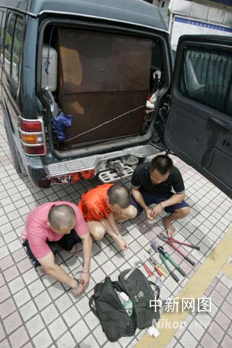 警方現(xiàn)場(chǎng)繳獲吉普車(chē)內(nèi)的液壓剪、扳手等作案工具一批。經(jīng)檢查,被盜大貨車(chē)的油箱內(nèi)約有70升柴油已被吸入吉普車(chē)的油罐。根據(jù)估計(jì),吉普車(chē)內(nèi)的油罐容量有1噸左右。
