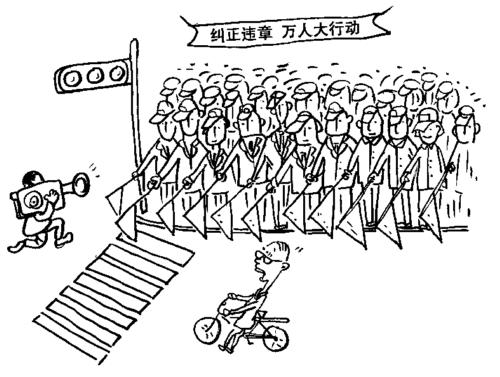 從報(bào)道來(lái)看,該市行人亂穿馬路的問(wèn)題并非一天兩天形成的。那么,有關(guān)部門(mén)為什么不早日整治,實(shí)行長(zhǎng)效管理?大張旗鼓啟動(dòng)“暢通工程”,萬(wàn)名機(jī)關(guān)干部上街做“志愿者”一定管用嗎?在我看來(lái),良好的交通秩序,光靠萬(wàn)名機(jī)關(guān)干部一次兩次上街集中勸導(dǎo),舉行一個(gè)暢通工程啟動(dòng)儀式是遠(yuǎn)遠(yuǎn)不夠的。它需要政府科學(xué)規(guī)劃城市交通,需要完善管理機(jī)制,需要每一名市民自覺(jué)遵守交通規(guī)則,需要交通秩序管理成為制度常態(tài)。(作者:葉祝頤)