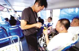 本報訊 前晚10點多,南京一輛33路公交車行駛到公交總公司時,一對中年男女從該輛公交車的前后門分別上車,30多歲的男子從前門上車后,主動投了兩枚硬幣入,另一中年女子則手提一只白色大塑料桶,很吃力地從車后門上了車。