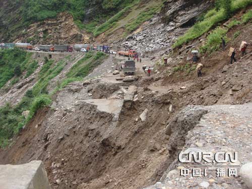 不到兩天時(shí)間,公路中段造成前后兩端400輛車輛受堵,排起長龍,上千人被困。運(yùn)送生活物資只能靠武警交通二支隊(duì)官兵臨時(shí)利用圓木和預(yù)制板搭建的人行通道快速通過。另外,公路中段造成樟木口岸油料緊缺,給搶險(xiǎn)保通帶來一定影響。西藏交通部門連同中交一勘院專家組和負(fù)責(zé)搶險(xiǎn)保通任務(wù)的武警交通第二支隊(duì),迅速組成搶險(xiǎn)保通指揮部,緊急商討制定施工方案。由于濃霧、山體滑坡繼續(xù)擴(kuò)大,加之不間斷的強(qiáng)降雨等眾多不確定因素,給整個(gè)搶通工作帶來相當(dāng)大的難度。