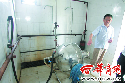 離開(kāi)女澡堂后,記者來(lái)到西安美辰藥業(yè)有限公司的生產(chǎn)操作間,走進(jìn)操作間,沒(méi)有發(fā)現(xiàn)這家制藥企業(yè)有消毒設(shè)施?帐幨幍臐嵕呦鹃g,凌亂地?cái)[放著幾個(gè)拖把,一個(gè)自來(lái)水閥和一個(gè)水池。