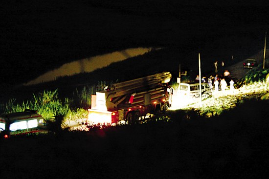 記者接報(bào)趕赴時(shí),發(fā)現(xiàn)警方在距現(xiàn)場一公里處便已開始設(shè)卡封鎖,禁止無關(guān)人員進(jìn)入(見上圖,陳文筆、張雄高攝)。209倉庫內(nèi)警燈閃爍,大批消防車出動(dòng)。由于是化學(xué)品失火,不能用水撲救,因此不斷有泥頭車從外面運(yùn)來干沙滅火。昨晚11時(shí)許還增加了一輛挖掘機(jī)進(jìn)場。待情況穩(wěn)定后,不斷有此前從倉庫疏散出來的工人經(jīng)同意后重新進(jìn)入庫區(qū)。