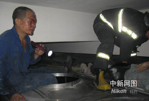 此時(shí),劉華景發(fā)現(xiàn)帶來的照明燈也因?yàn)楸ㄊチ斯δ埽車黄岷。妻子受傷在一旁無法起身,丈夫?yàn)榫绕拮,一邊關(guān)掉了昏前使用的氧氣瓶,一邊拖著傷重的身體摸索著下水箱的梯子(現(xiàn)場一片漆黑,當(dāng)時(shí)的梯子只搭在水箱上面,高度兩米五左右,劉華景眼睛受傷,只能摸索),費(fèi)勁體力,終于找到了樓上值班的員工,并帶到了事故地點(diǎn)營救妻子。但事情卻沒有那么簡單,妻子的腰部受傷嚴(yán)重,如果輕易抬動(dòng),可能導(dǎo)致整個(gè)人永久癱瘓,所以員工不敢輕易救援,只能撥打了“120”和“119”救助。