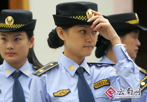 提起城管,你首先想到的是什么呢?暴力執(zhí)法?沒有人情味?昨日,昆明市五華區(qū)城管在我省成立首支城管監(jiān)察女子中隊,力求通過女性柔情的溫和執(zhí)法思路,改變城管給人缺乏親和力的“習慣”形象,也希望通過這些“鏗鏘玫瑰”的細致和耐心,將暴力抗法扼制在萌芽狀態(tài),避免產(chǎn)生激烈的沖突。