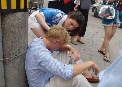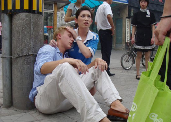 發(fā)帖人這樣描述現(xiàn)場的情景,“當時一金發(fā)碧眼的老外走得挺慢,我沒怎么注意,一回頭那老外坐地下了,耷拉著個腦袋。 旁人圍了過來,議論說可能是中暑了,這會兒過來一漂亮美眉,還是個奧運志愿者,又是摸頭又詢問的。老外當時瞳孔放大,很嚇人的樣子!美眉看樣子也有點發(fā)懵,不過,很快就指揮大伙打電話什么的。”“周圍還有人拿出風(fēng)油精,附近飯館經(jīng)理服務(wù)員呼啦全來了,還幫忙倒水。那志愿者美眉,我估計是還有點經(jīng)驗,又掐人中又揉太陽穴的折騰半天,可把她急壞了……一會老外終于站了起來!隨后志愿者美眉用英文問清老外的住址后要送老外回去,估計怕老外走半道再犯了啥的,旁邊大家都夸她,人家還挺低調(diào)扶著老外就走了!