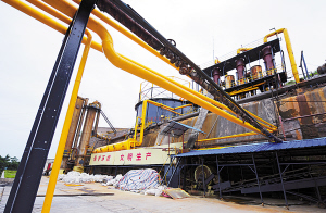 受廢氣污染,中昊集龍鍶廠煙道上的水泥已成粉狀。冉文/攝