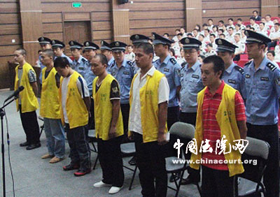 九江中院院長(zhǎng)陳堅(jiān)親自擔(dān)任該案審判長(zhǎng),并當(dāng)庭宣讀了判決書,一審以故意殺人罪、搶劫罪、盜竊罪,數(shù)罪并罰,判處被告人吳曉劍死刑,剝奪政治權(quán)利終身;以故意殺人罪、盜竊罪,數(shù)罪并罰,判處被告人任忠杰死刑,剝奪政治權(quán)利終身;以故意殺人罪、搶劫罪、盜竊罪,數(shù)罪并罰,分別判處被告人楊曉大、吳曉安、王曉海有期徒刑十七年、 十四年和十三年;以搶劫罪和盜竊罪數(shù)罪并罰,判處被告人劉曉剛有期徒刑七年。同時(shí),判決被告人吳曉劍、任忠杰、王曉海、楊曉大、吳曉安共同賠償附帶民事訴訟原告人許俊谷景的母親、妻子及女兒許可的經(jīng)濟(jì)損失共計(jì)人民幣284410.22元。