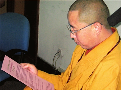 填寫好報(bào)名表,釋宏永的手機(jī)響起,僧袍里,他熟練地摸出一部智能手機(jī)——事實(shí)上,他還有聯(lián)想筆記本電腦、開(kāi)著越野車、印有名片,這些都“很現(xiàn)代”。在他看來(lái),寺廟不能脫離現(xiàn)代社會(huì)而存在。這次汶川大地震期間,釋宏永參加救援隊(duì)伍,帶路營(yíng)救出45名群眾,并一直堅(jiān)持在災(zāi)區(qū)一線抗震救災(zāi),個(gè)人化緣為回龍溝災(zāi)區(qū)買回1萬(wàn)多斤大米賑災(zāi),在當(dāng)?shù)乇粋鳛榧言挕?