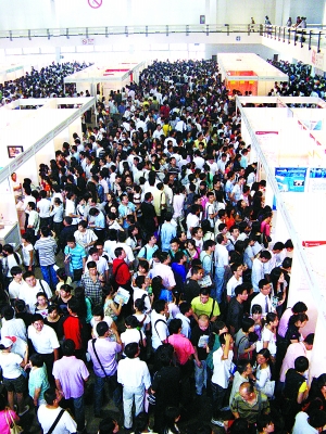 國(guó)展的2、3、4號(hào)展廳中人頭攢動(dòng),中國(guó)礦業(yè)大學(xué)行政管理專業(yè)大四學(xué)生王琛手拿一個(gè)文件夾在眾多展臺(tái)中尋找適合自己的崗位。王琛說(shuō),夾子中有志愿者證、一大摞簡(jiǎn)歷和奧運(yùn)服務(wù)心得,其中還夾了一張她與“新飛人”博爾特的合影。奧運(yùn)期間,王琛作為工人體育場(chǎng)的志愿者出色地完成了服務(wù)奧運(yùn)的任務(wù),奧運(yùn)結(jié)束后,已經(jīng)大四的王琛開始謀劃自己的出路。