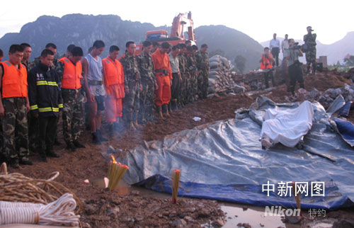 消防官兵為黃建平默哀現(xiàn)場