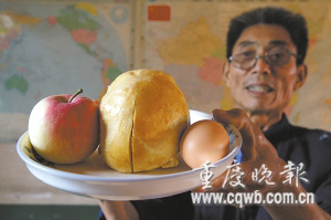 從雞肚子里掏出一個重0.6公斤的大“金蛋”。(圖片來源:重慶晚報)