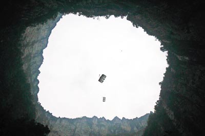 運(yùn)動員從天坑頂部跳下