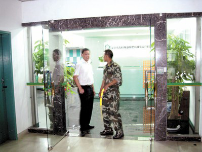 事發(fā)地點(diǎn)位于深圳市福田區(qū)蓮花街道蓮花北村富蓮大廈三樓的某物業(yè)公司。昨日中午,記者接報(bào)趕到時(shí),公司玻璃大門已經(jīng)上鎖,4名穿迷彩服的男子守在門口,空氣中充滿了焦糊的汽油味。玻璃門內(nèi)一片漆黑,未開電燈。該公司一員工稱,他上午沒在公司,后聽同事說是老員工鐘先生在公司內(nèi)潑汽油,并用打火機(jī)點(diǎn)燃,燒傷了自己和一名吳姓經(jīng)理。