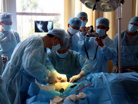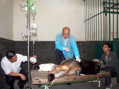 基地專家告訴四川新聞網(wǎng)記者,骨科手術要求很嚴,在所有手術中僅次于心臟手術,稍有不慎就可能造成感染引發(fā)骨髓炎,并有截肢的危險。為確保手術萬無一失,基地獸醫(yī)與成都軍區(qū)八一骨科醫(yī)院的專家反復討論手術方案,為減少運輸和增加感染,專家一致決定將手術地點確定在基地的新獸醫(yī)院。