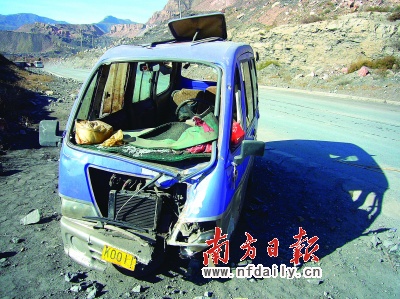 昨日上午,本報(bào)記者實(shí)地踏訪事發(fā)周邊區(qū)域。山被炸開的痕跡白花花地暴露在烈日之下。山腳之下,丁學(xué)聰老漢的院子落滿了“石頭雨”,院子里的碎石整整裝了2車手扶拖拉機(jī),還沒有清理完。他的33間房子被砸毀20余間,老漢欲哭無淚。就在他的鐵板房內(nèi),何老漢被砸破屋頂?shù)氖^砸到腰間,當(dāng)場(chǎng)死亡。大院的外邊,兩顆兩個(gè)籃球大小的石頭將堅(jiān)硬的地面砸出兩個(gè)深坑。