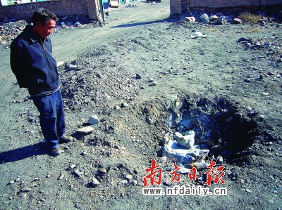 在距離爆破現(xiàn)場(chǎng)數(shù)百米的地方,飛石砸出了一個(gè)大坑。