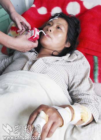 昨日,記者在新洲區(qū)陽(yáng)邏衛(wèi)生院見到,傷者魏秀林(女,44歲)的頭部、胸腹部、背部和四肢有十余處傷口,其中最長(zhǎng)的達(dá)15厘米。