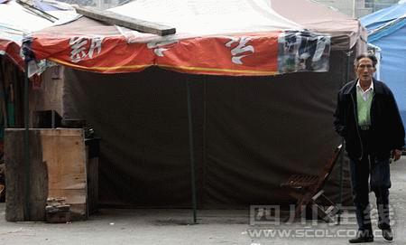 昨天上午,記者來到位于都江堰建設(shè)路172號的四川省汽車運輸?shù)?1隊,大院里一堆帳篷中,羅桂瓊的兒子魏強一家搭建的帳篷是軍綠色,其他帳篷的住戶都是51隊的退休職工。大家指給記者看他家的帳篷!爸徊贿^已經(jīng)幾天沒有人回來了!57歲的蘭芝慧家?guī)づ窬途o挨著魏強家?guī)づ瘢f,地震后5個月來,51隊的退休員工一直住在這個院子的帳篷里。由于羅桂瓊一家已搬出單位宿舍,到紫東街住,地震后,大家各忙各的,也沒有他們的消息。院子里的老人說,前幾天,只聽說魏強在一家餐館請親戚朋友吃喪飯,“隊里的人都知道他們家這兩天在辦喪事。”